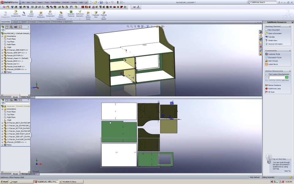 be created with the PASCAM WoodWorks Part description in SOLIDWORKS®. Using GTR Nest, this assembly is