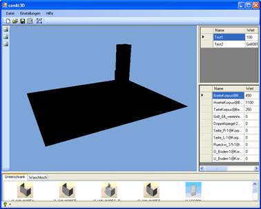 The HTML front-end webservice, provided by PASCAM con@3D as an B2B/B2C software solution can be configured optionally either as an online product configuration or an online interior design/-planning tool in 2D/ 3D views.