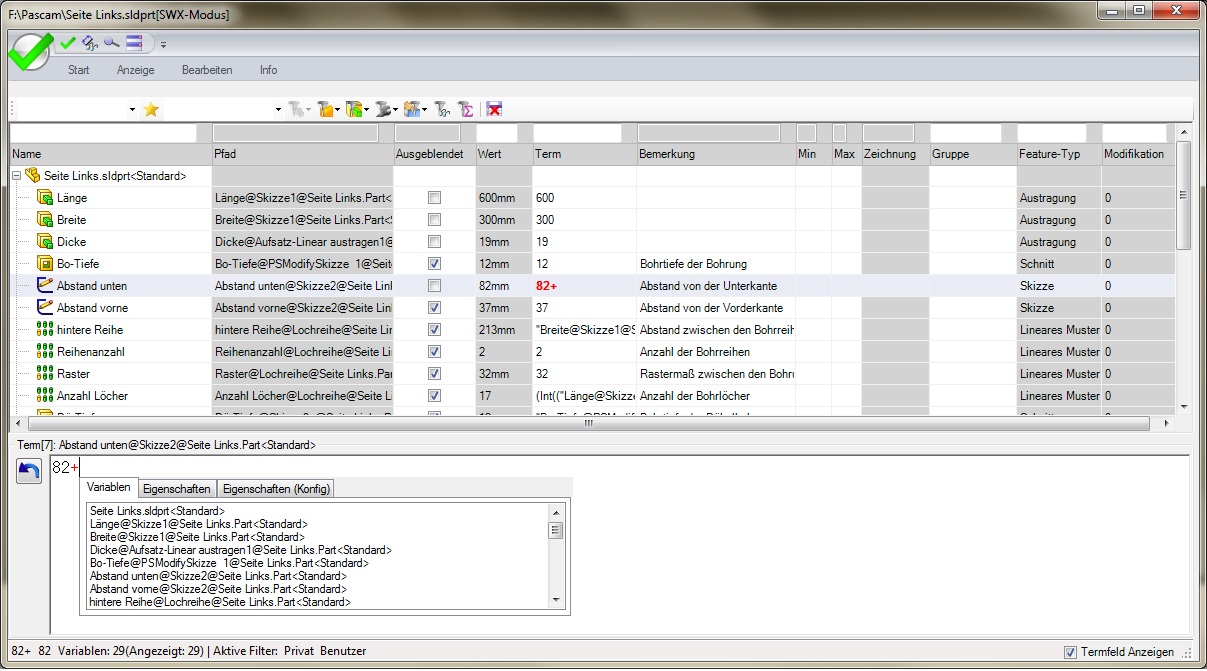 Every variable in the SOLIDWORKS® model - be it an equation or a dimension - can be assigned directly with VariXPASCAM.