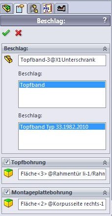 Erweiterter Funktionsumfang: Schnelles und sicheres Einfügen von Beschlägen und Zukaufteilen durch den PASCAM Beschlagsmanager in SOLIDWORKS® Modelle.